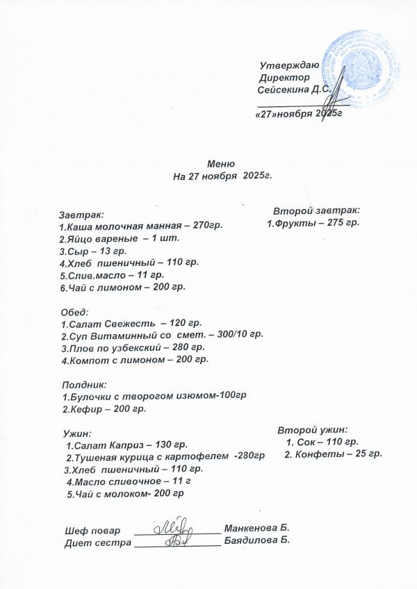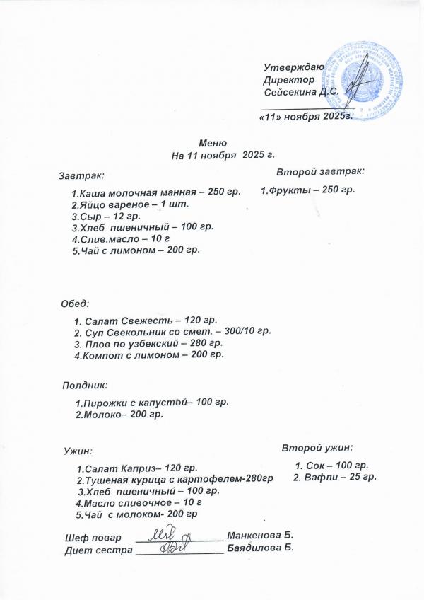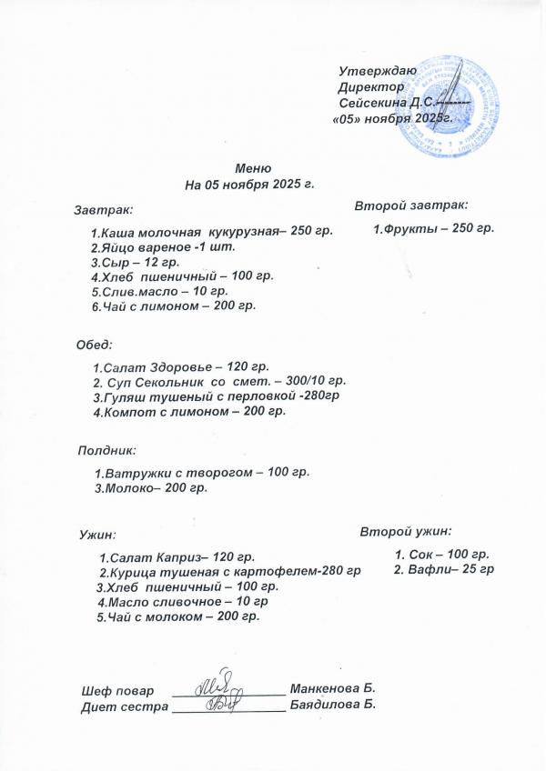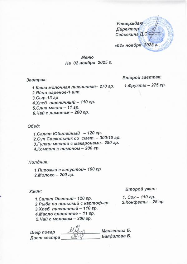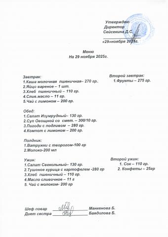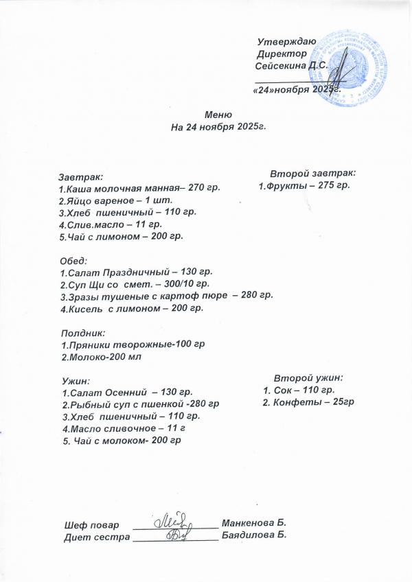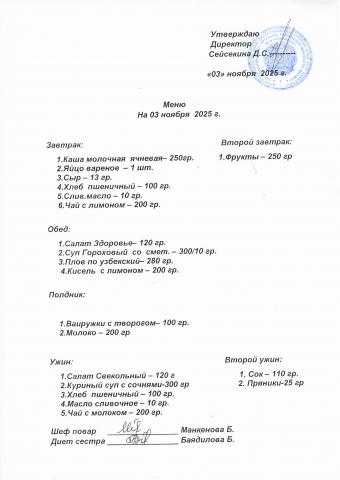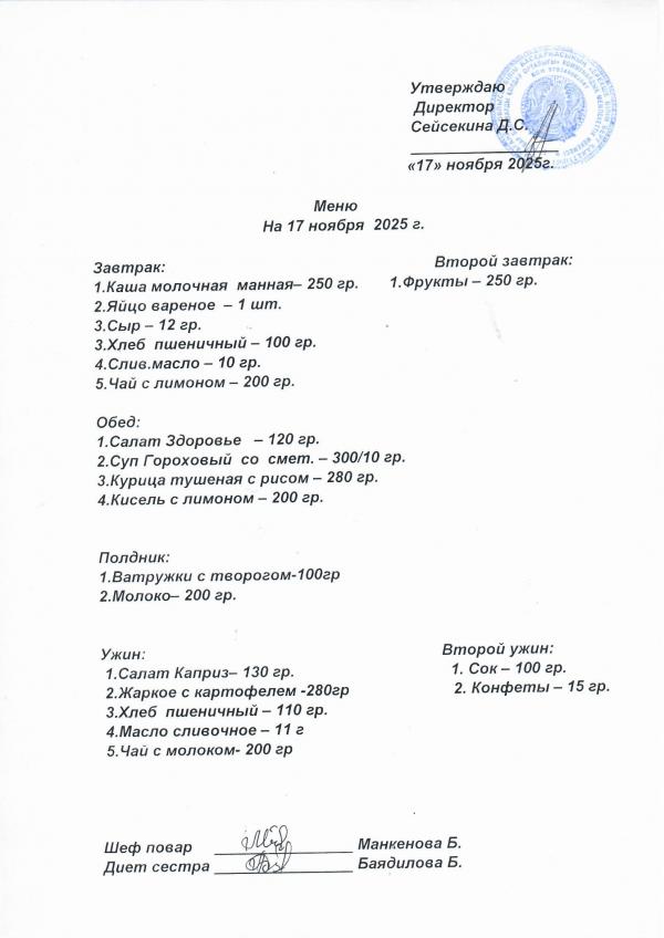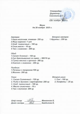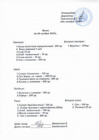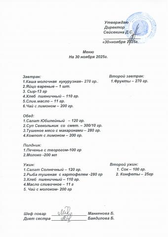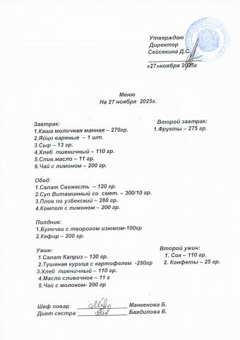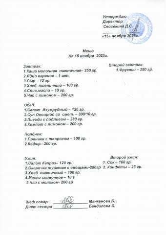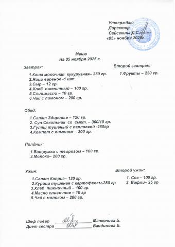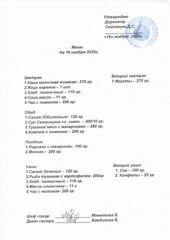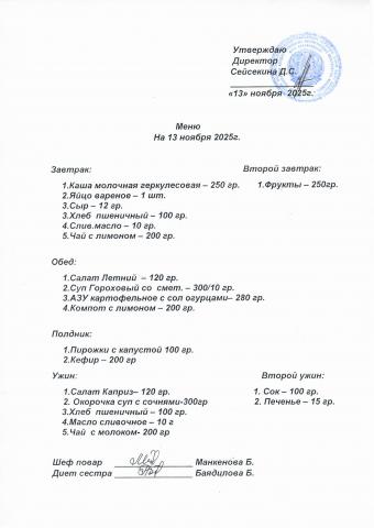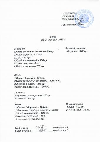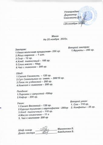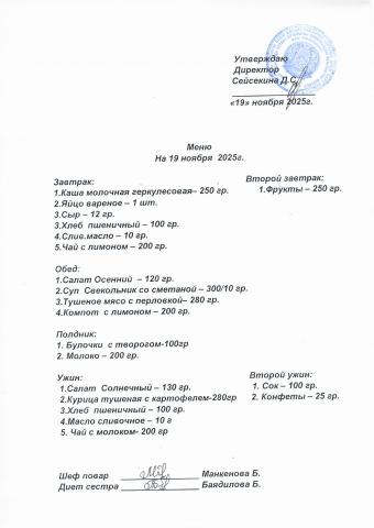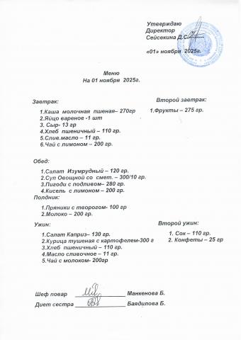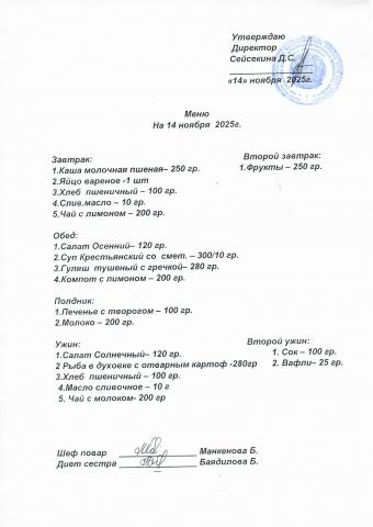 Меню ноябрь 2025
