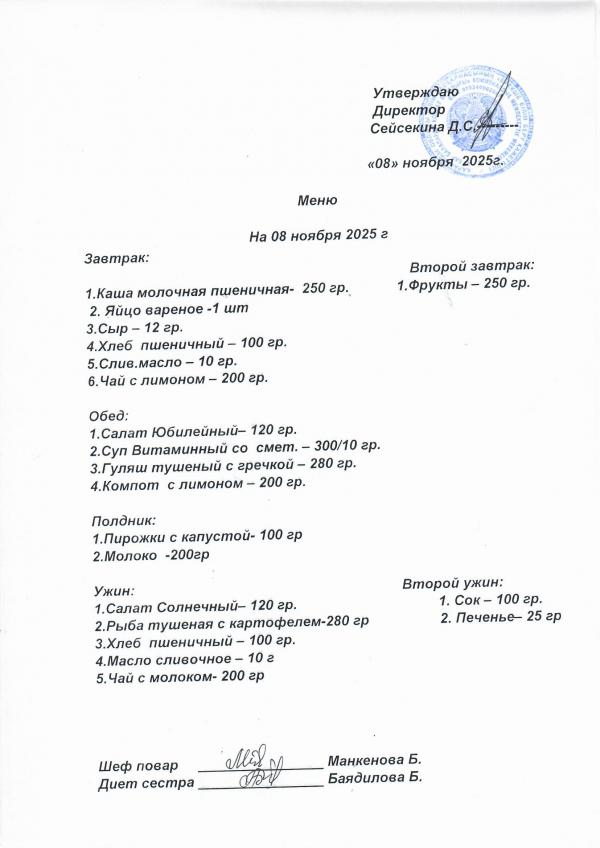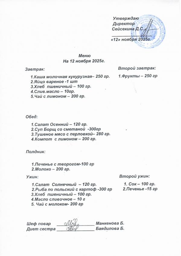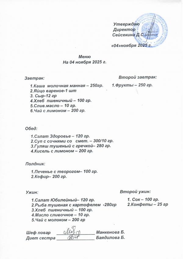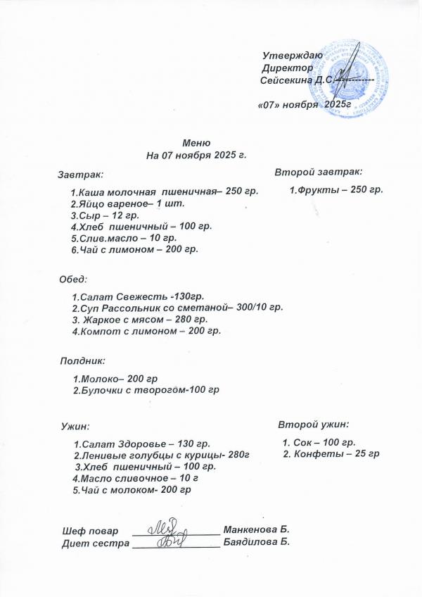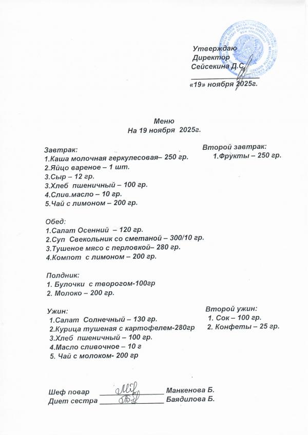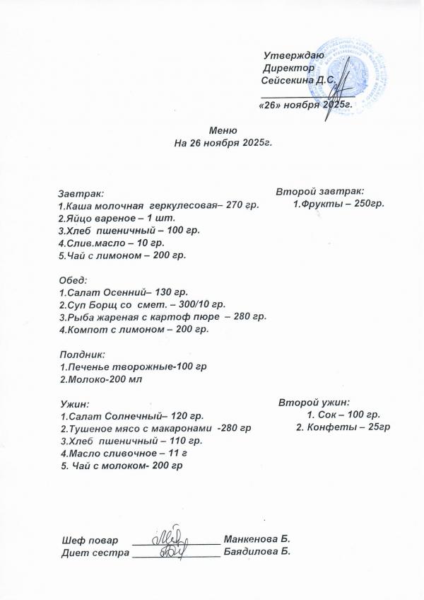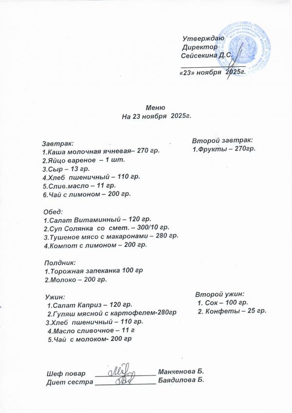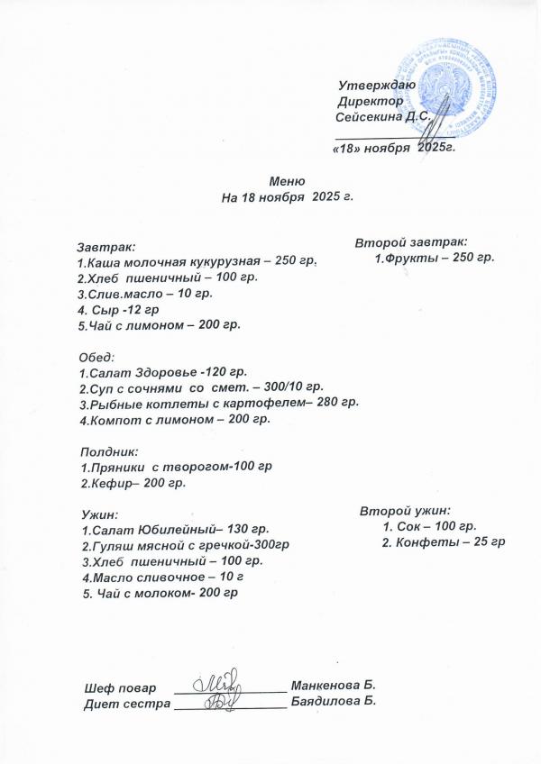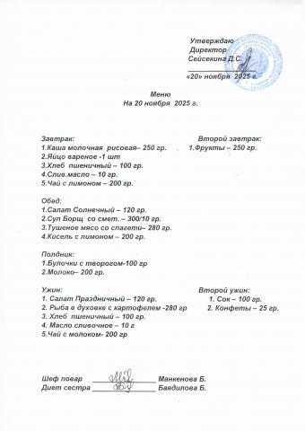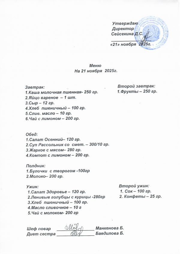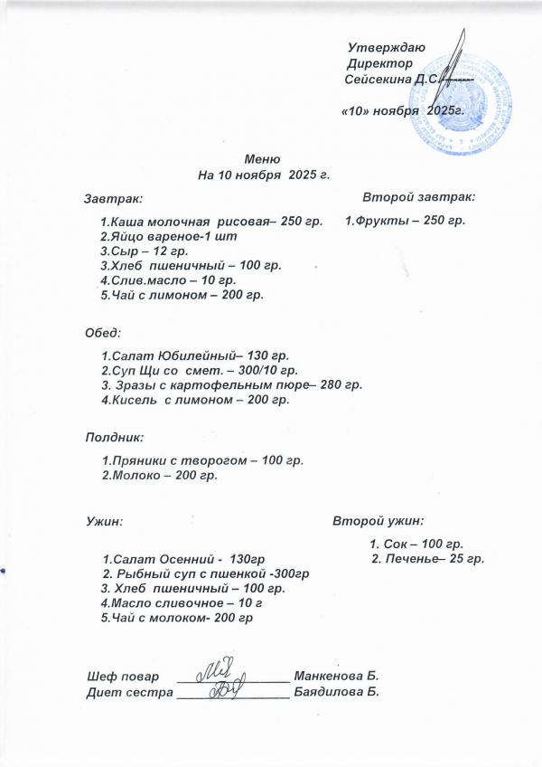 Меню ноябрь 2025