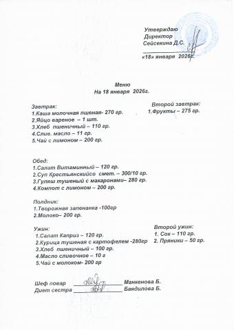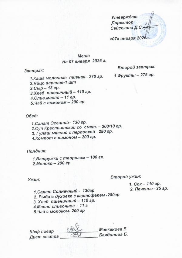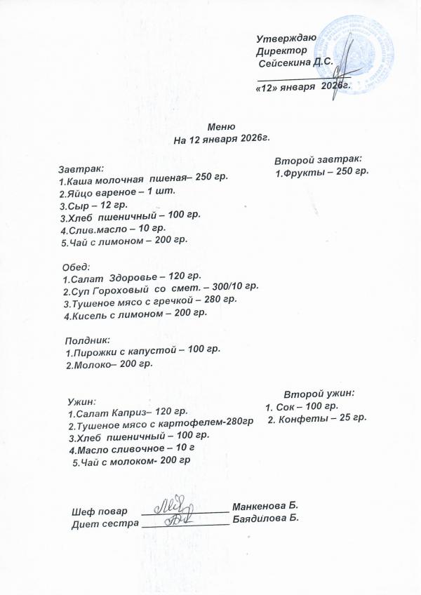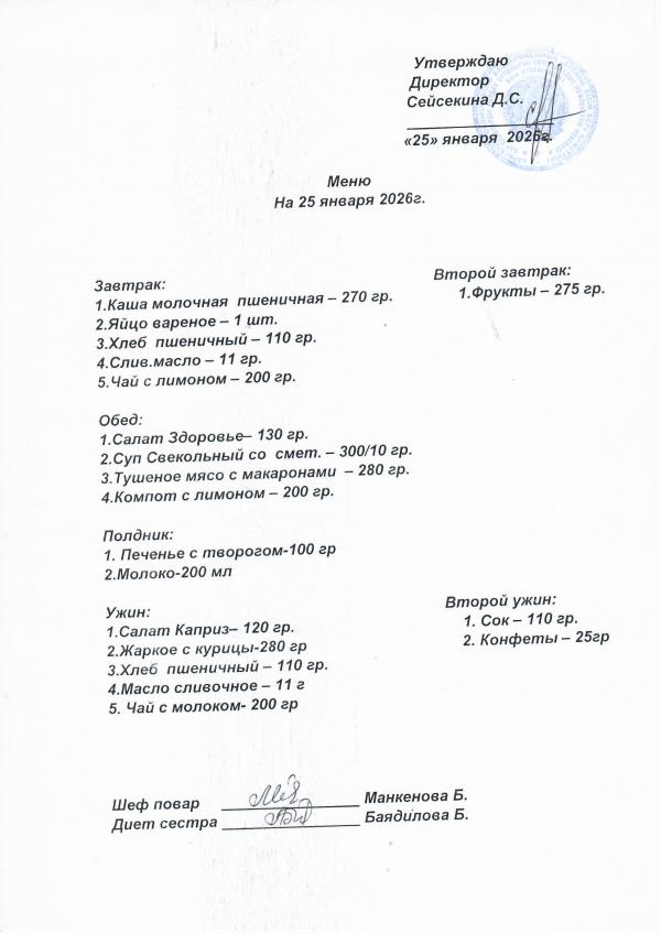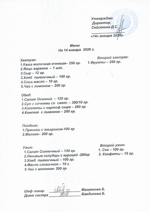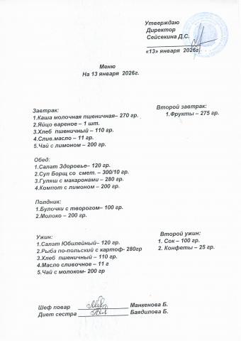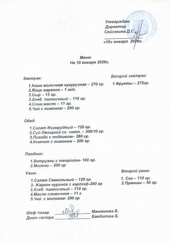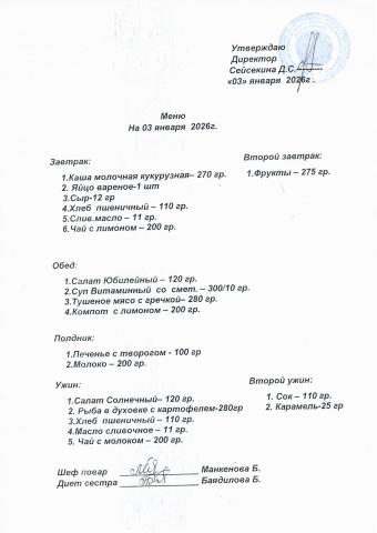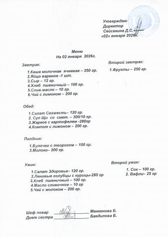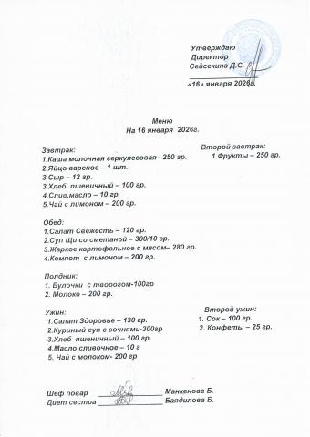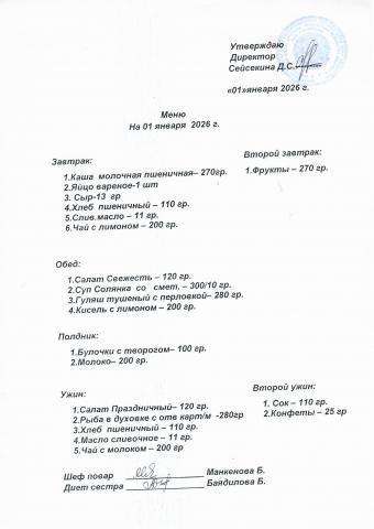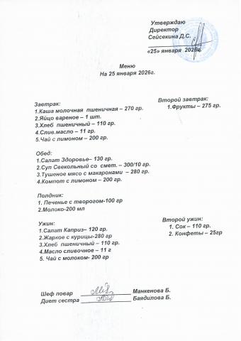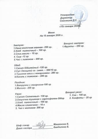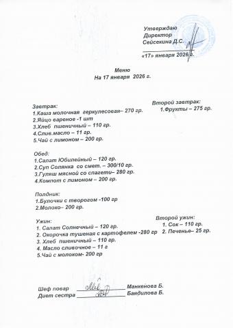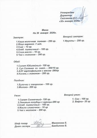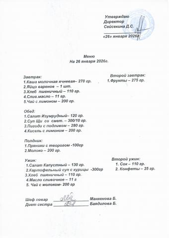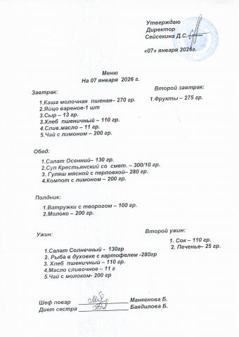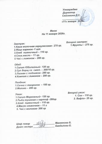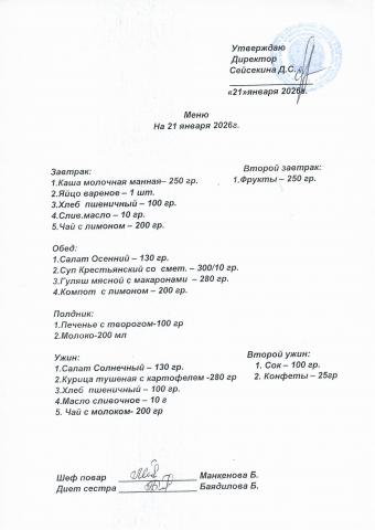 Меню январь 2026