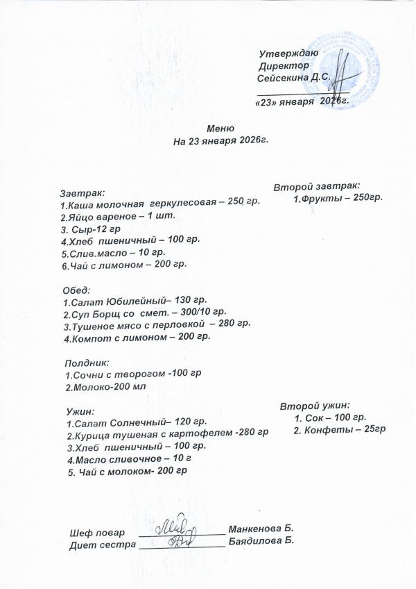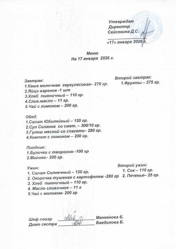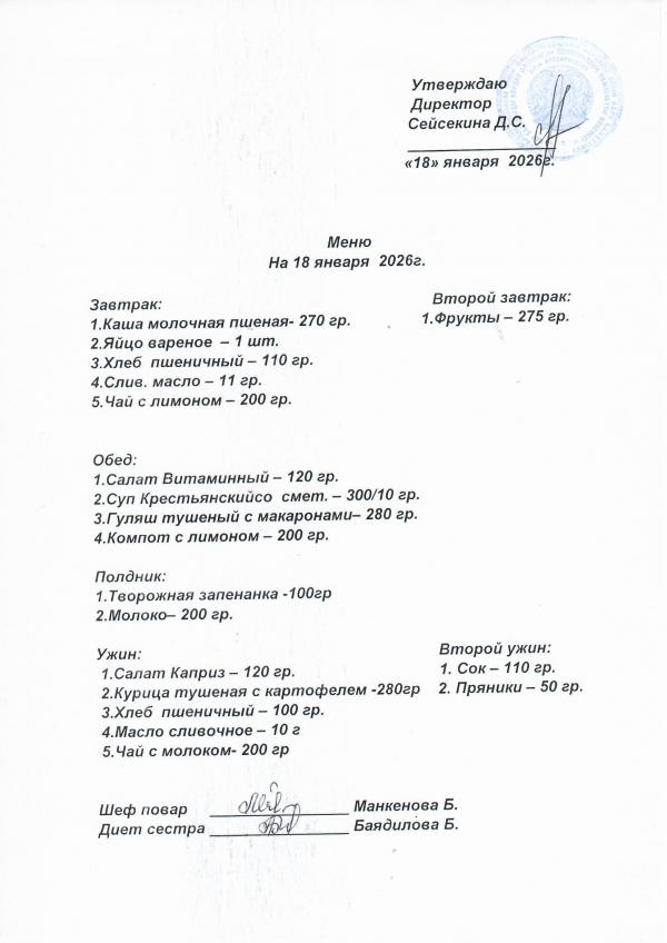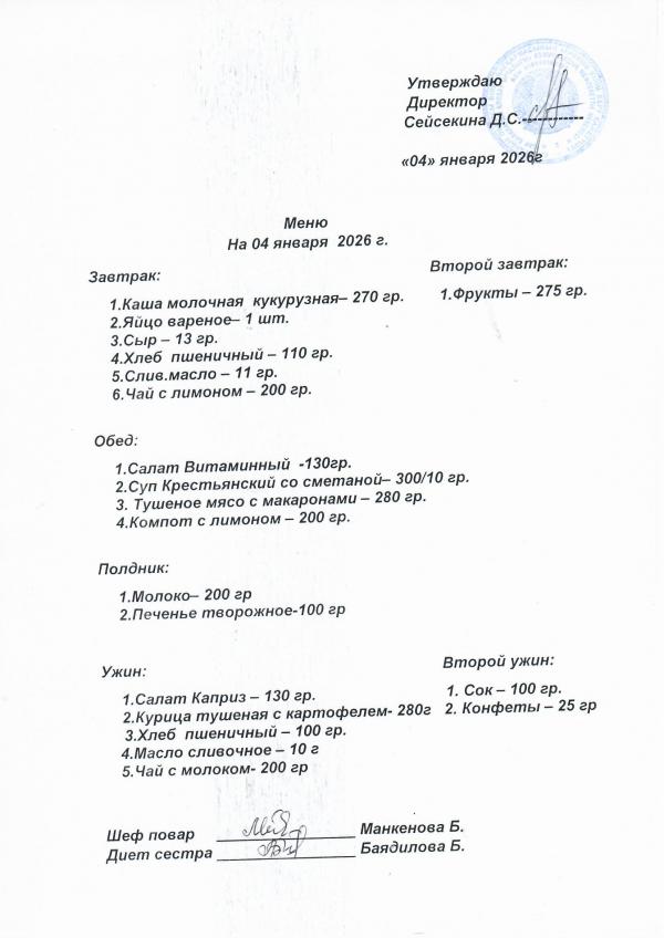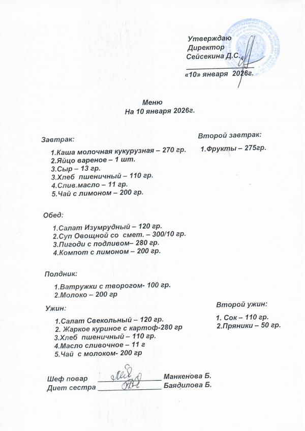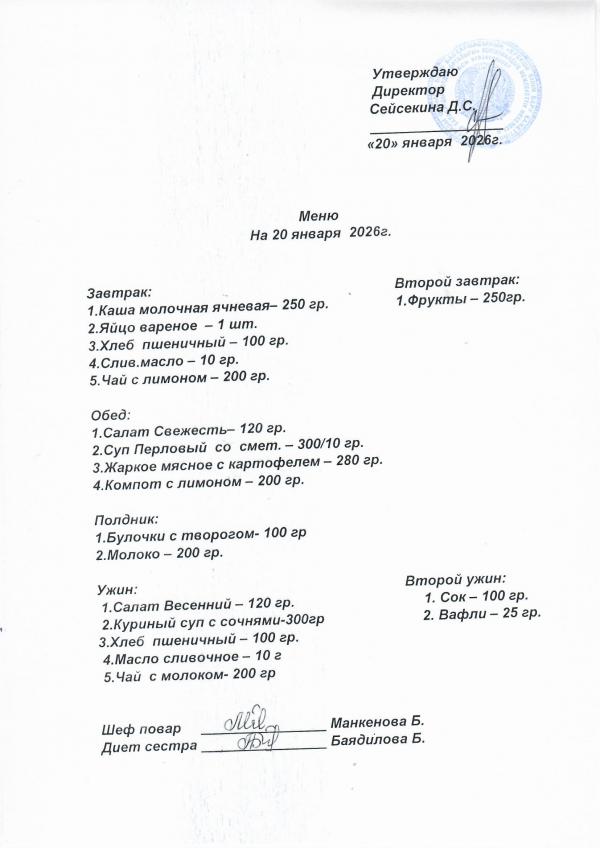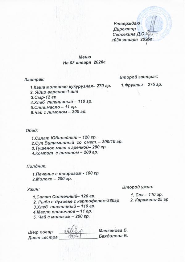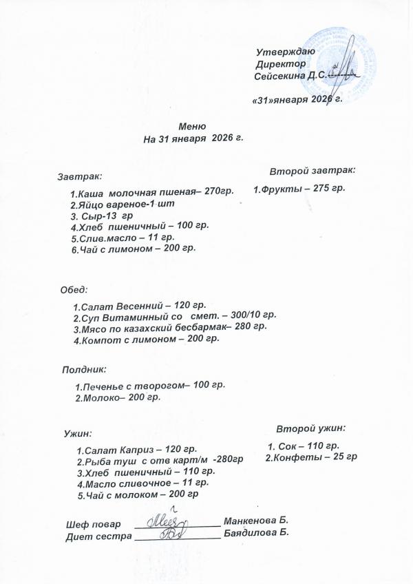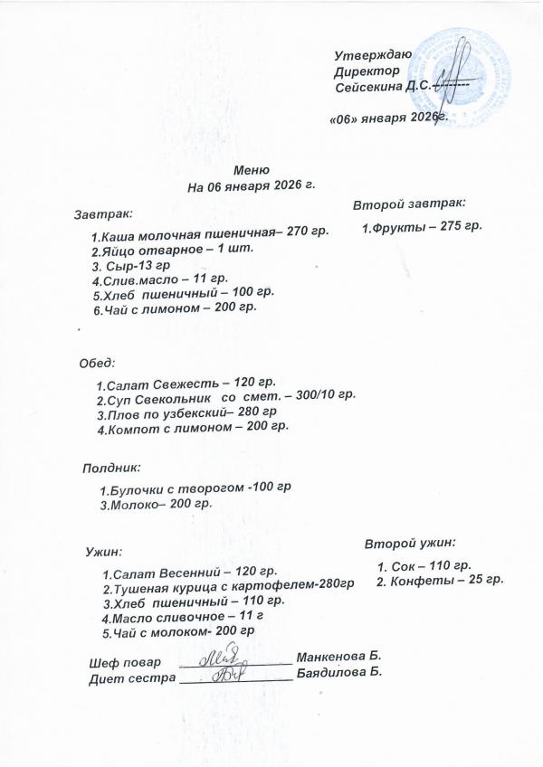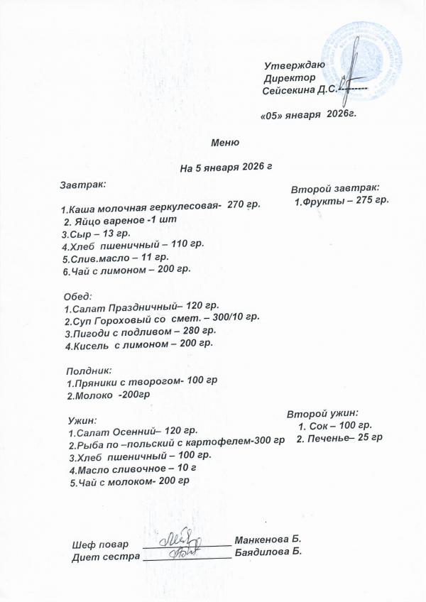 Меню январь 2026