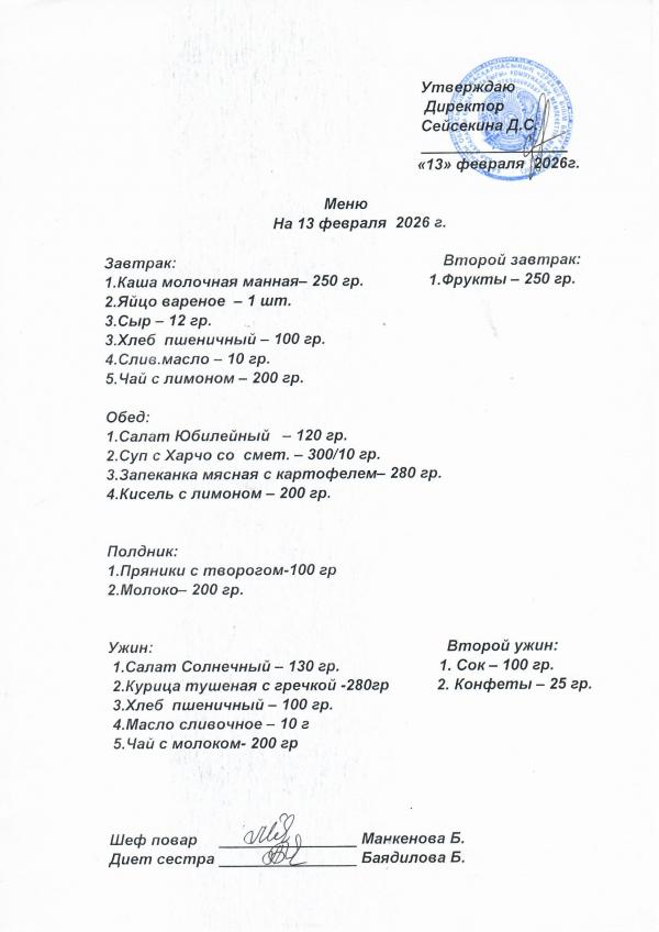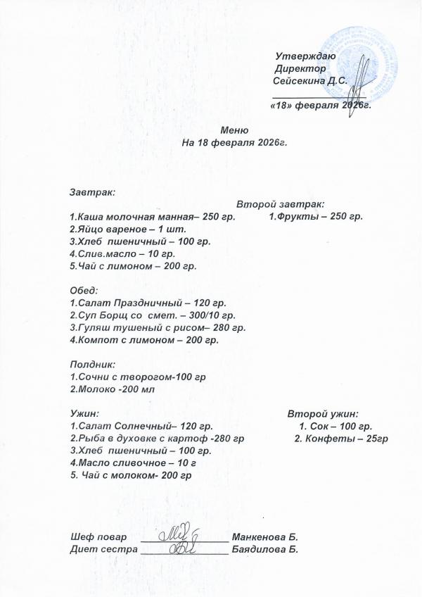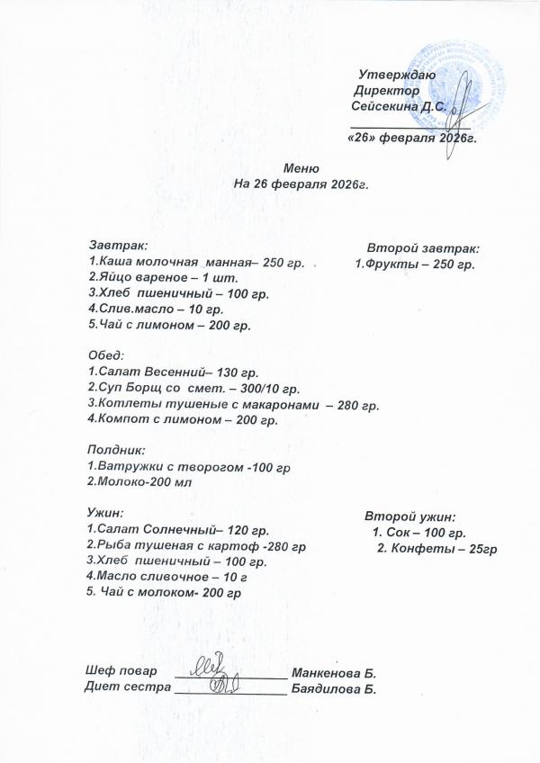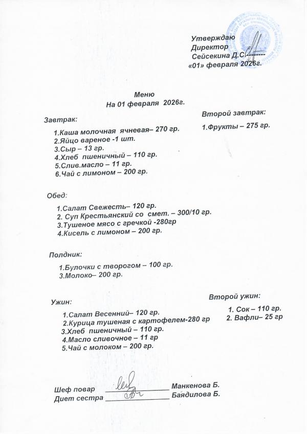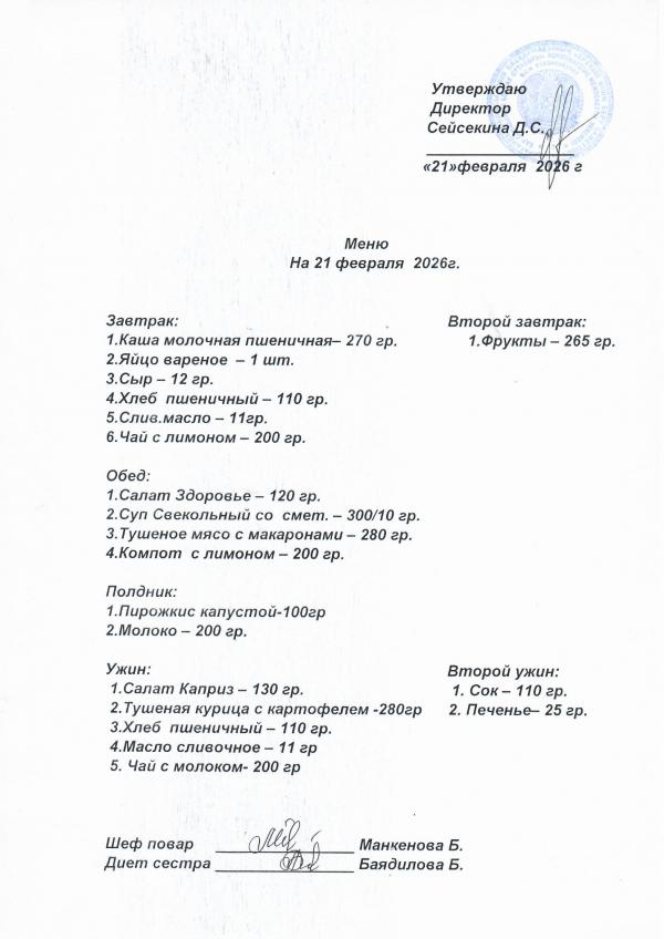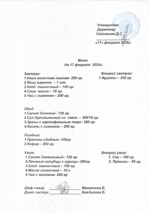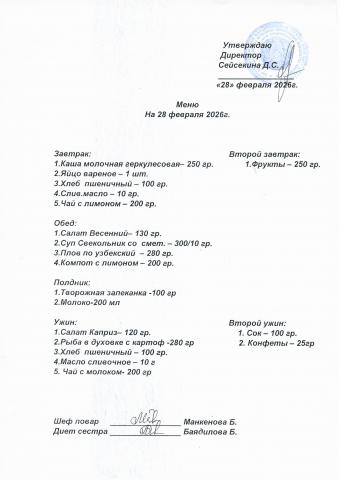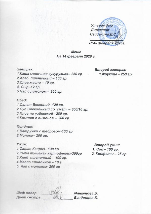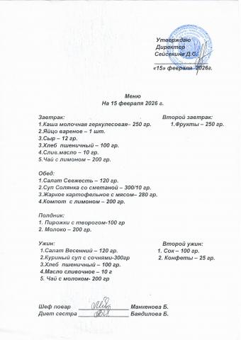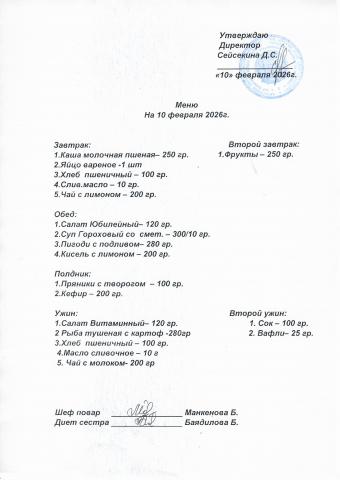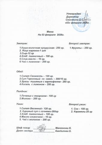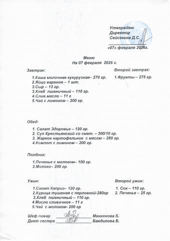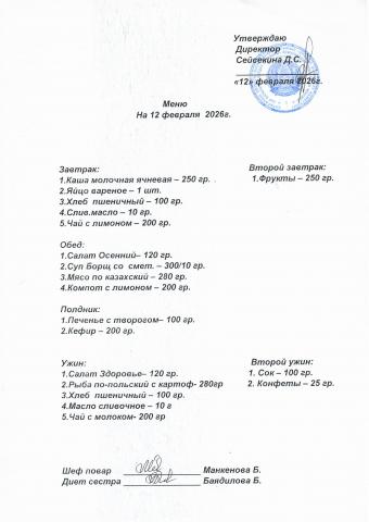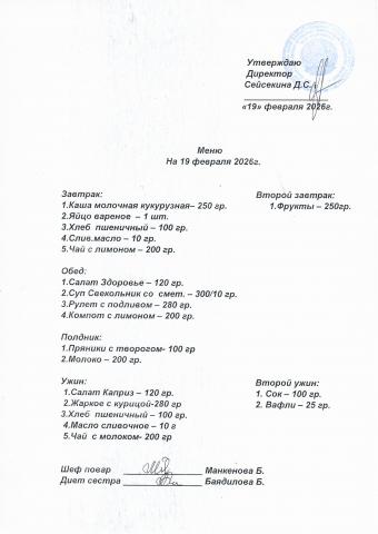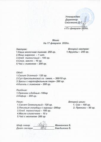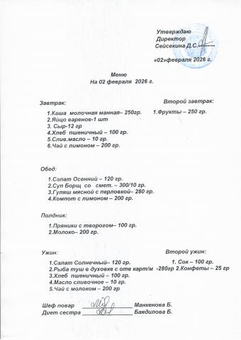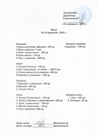 Меню февраль 2026