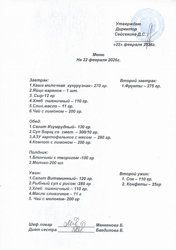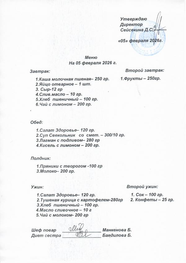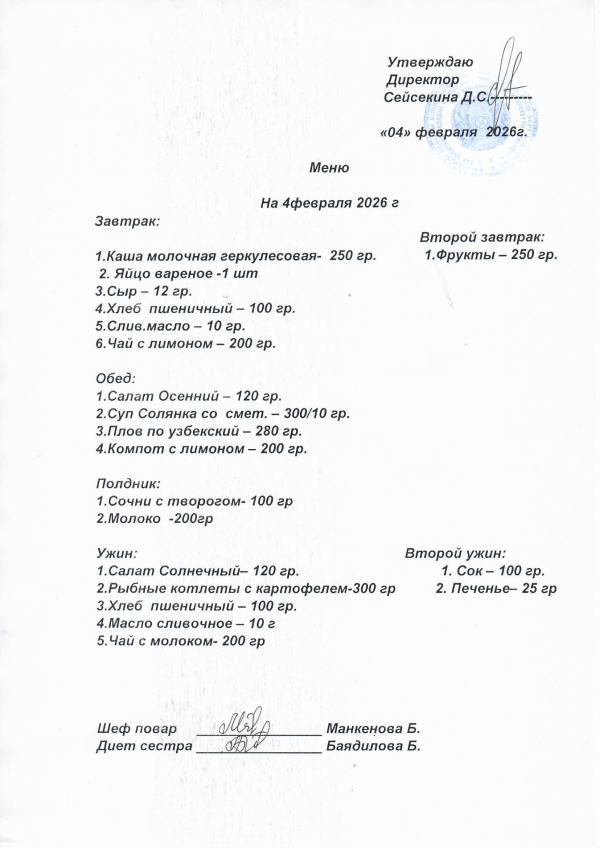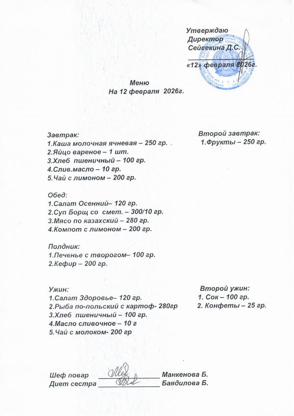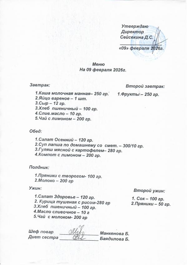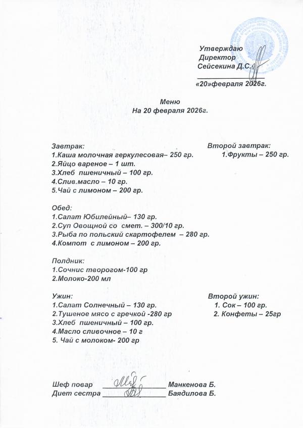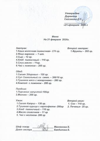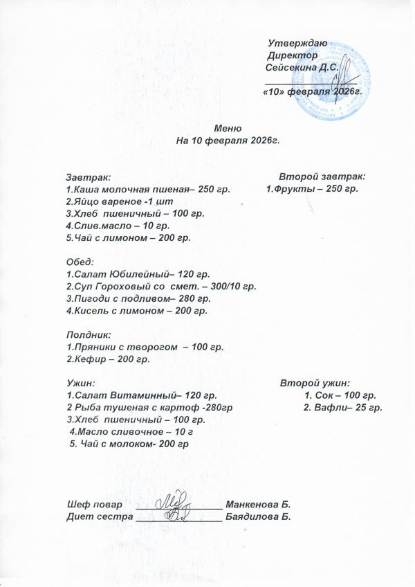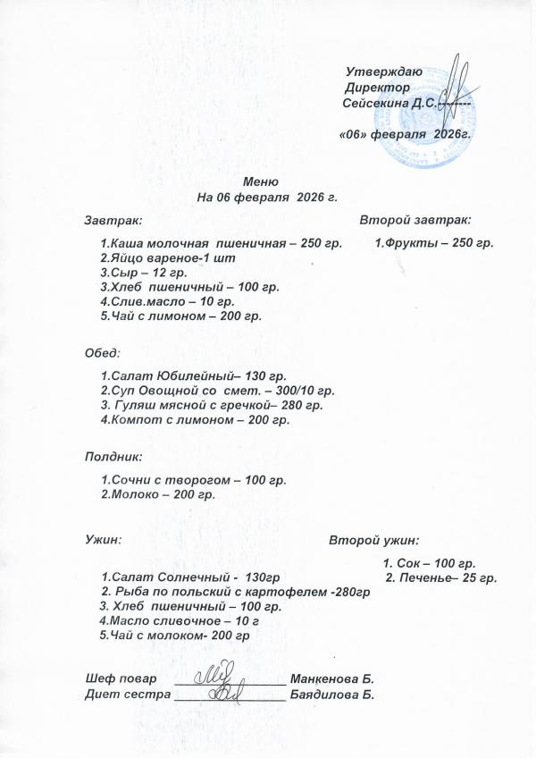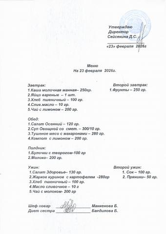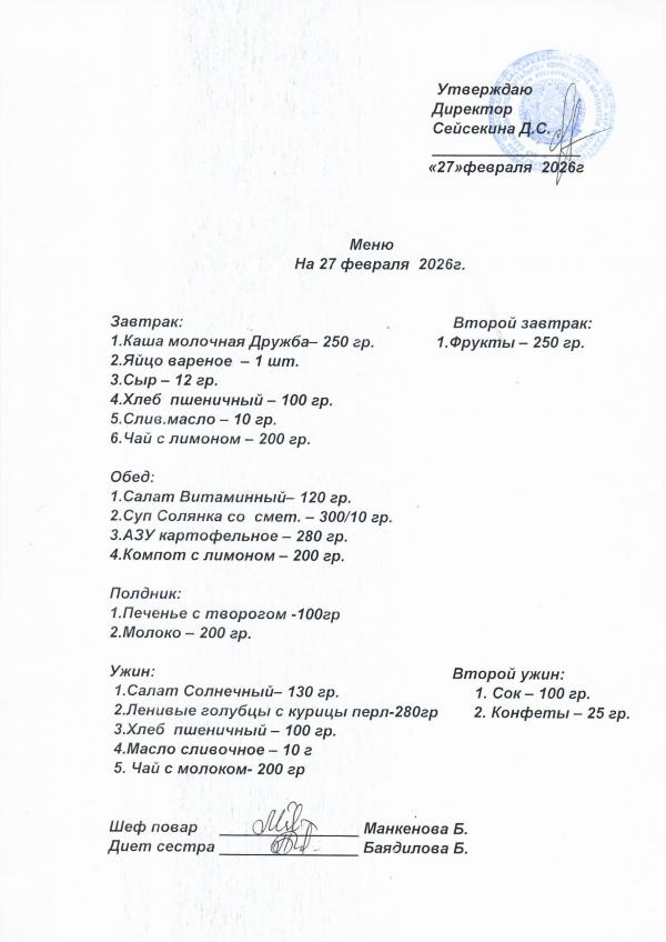 Меню февраль 2026