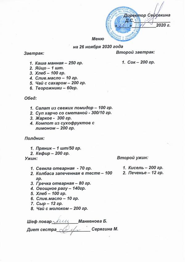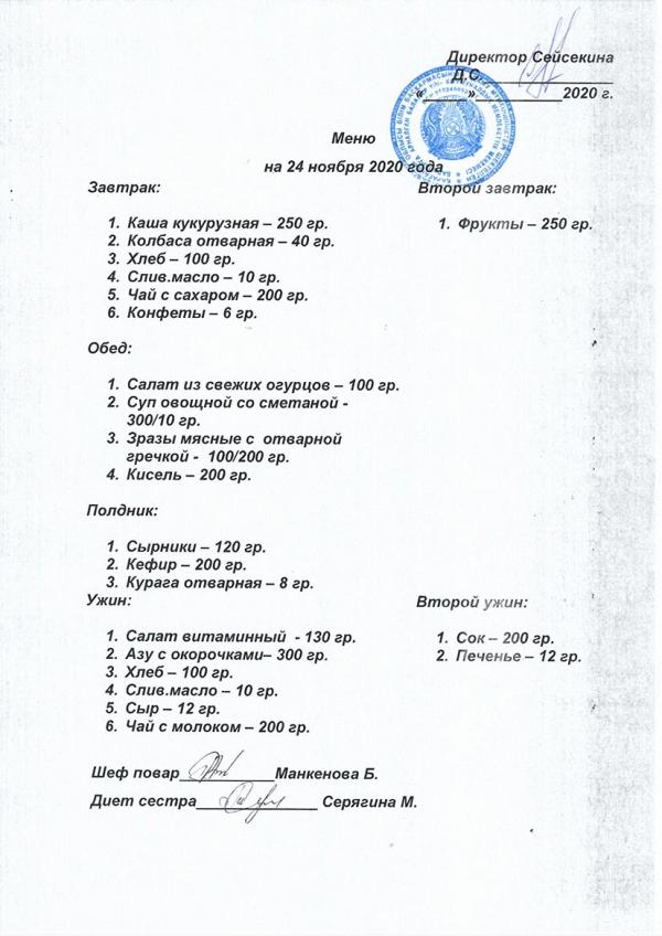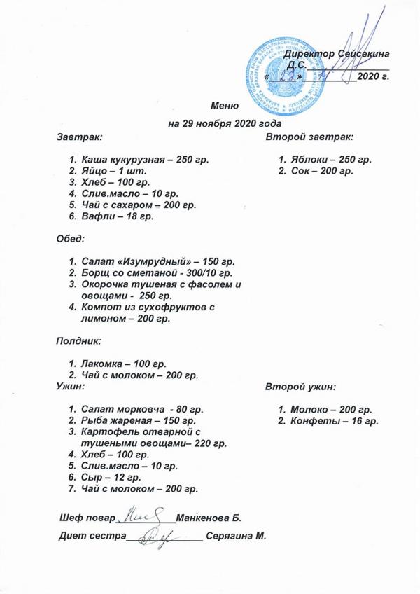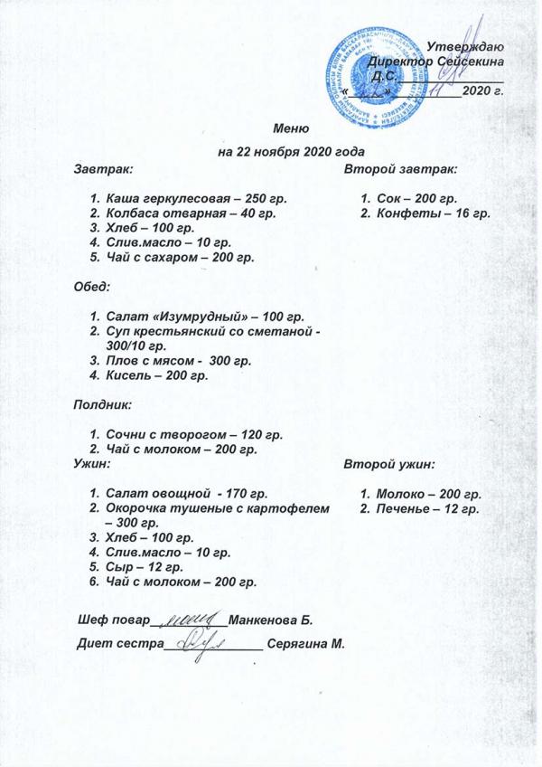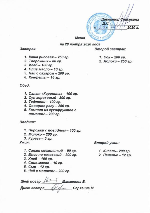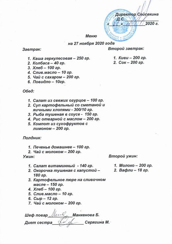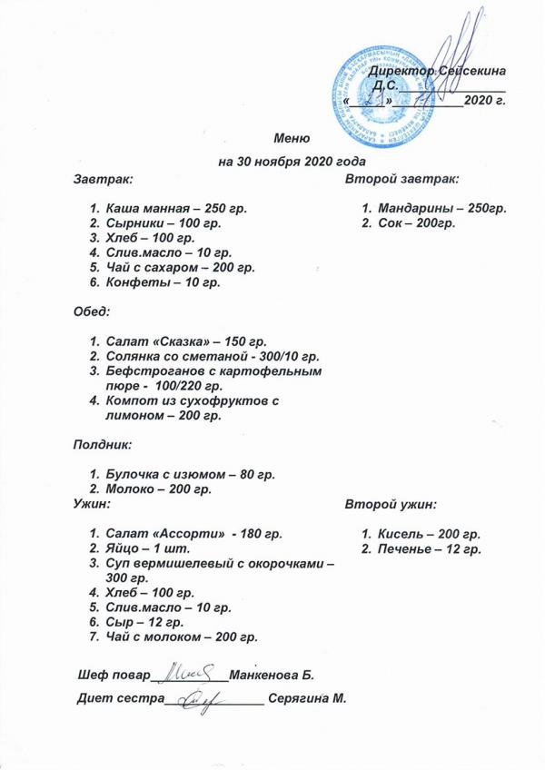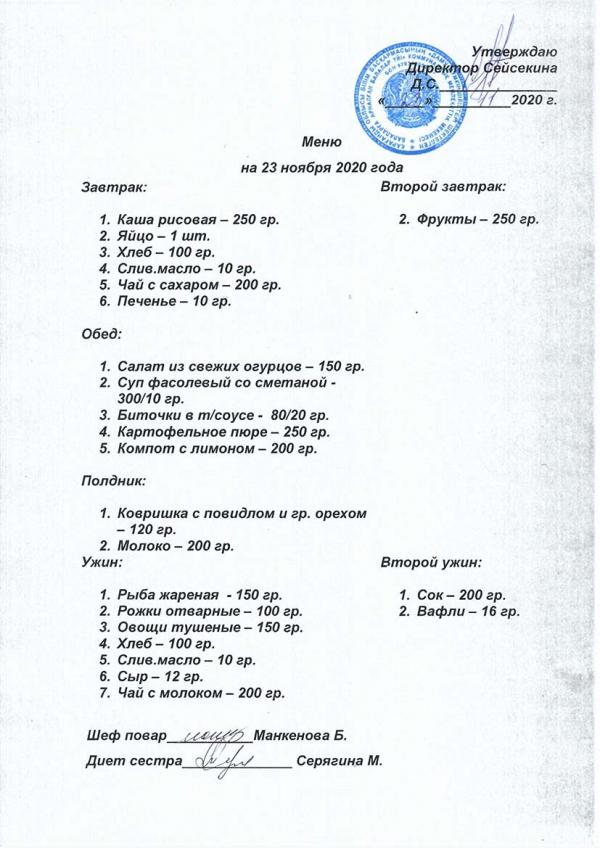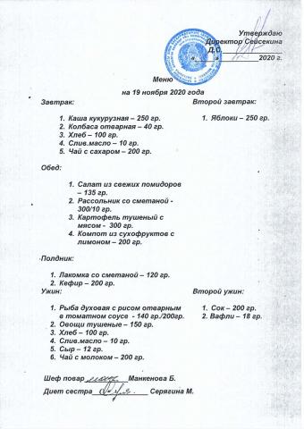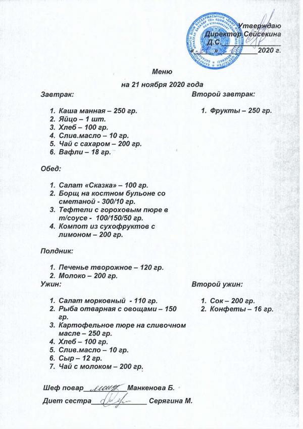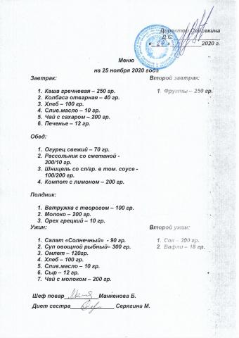 Меню ноябрь 2020 года
